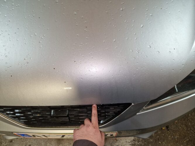 - Find det eksterne frigørelseshåndtag: Gå nu til fronten af bilen. Lige over nummerpladen skal du kunne se et andet håndtag, der er indbygget i frontgrillen eller i nærheden af VW-logoet.